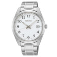 With classic dress/sport styling, this perfectly tailored design combines sophisticated minimalism with versatility. The soft white dial features a date calendar and LumiBrite hands. In stainless steel, with sapphire crystal for superior scratch resistance. 10 bar, 100M Water Resistant